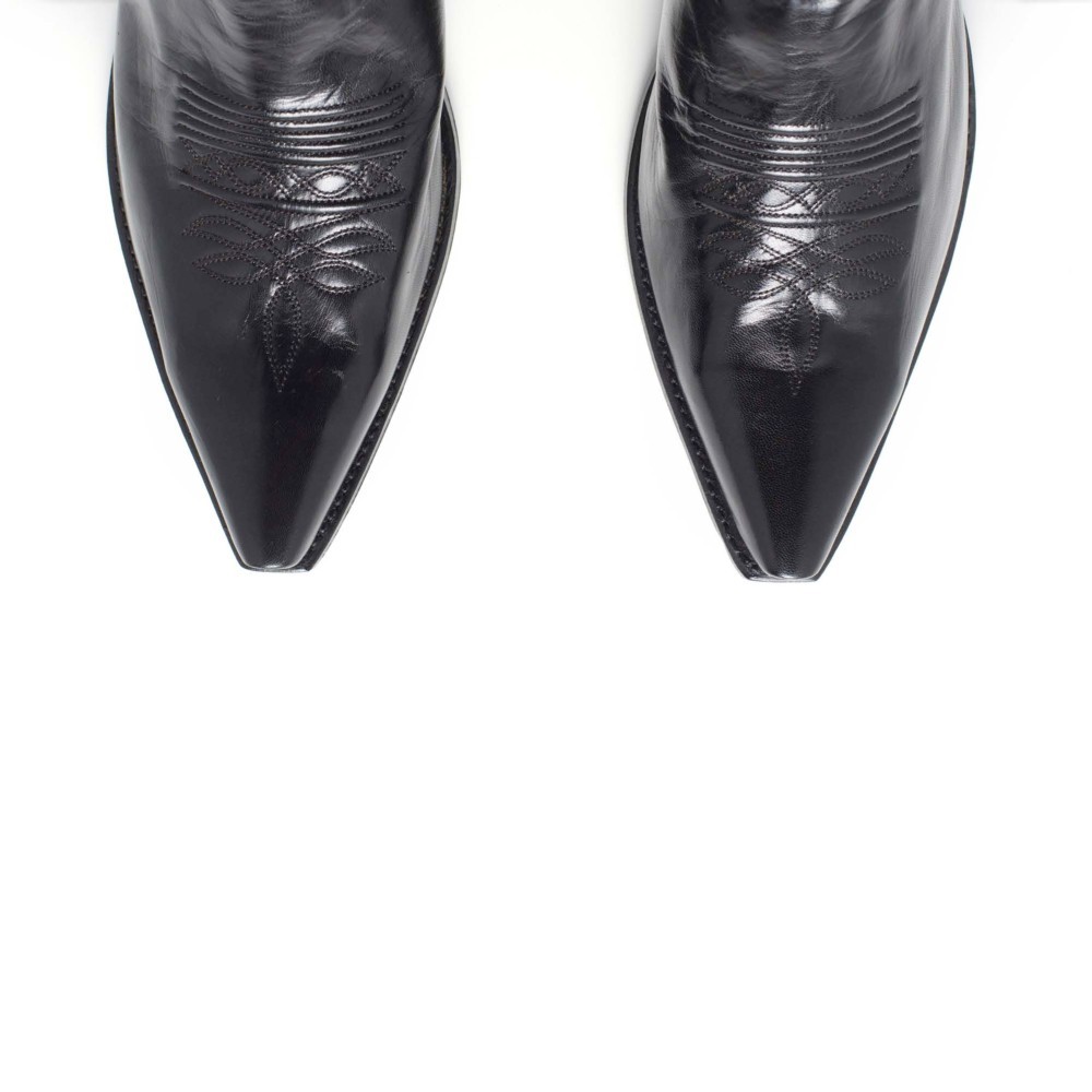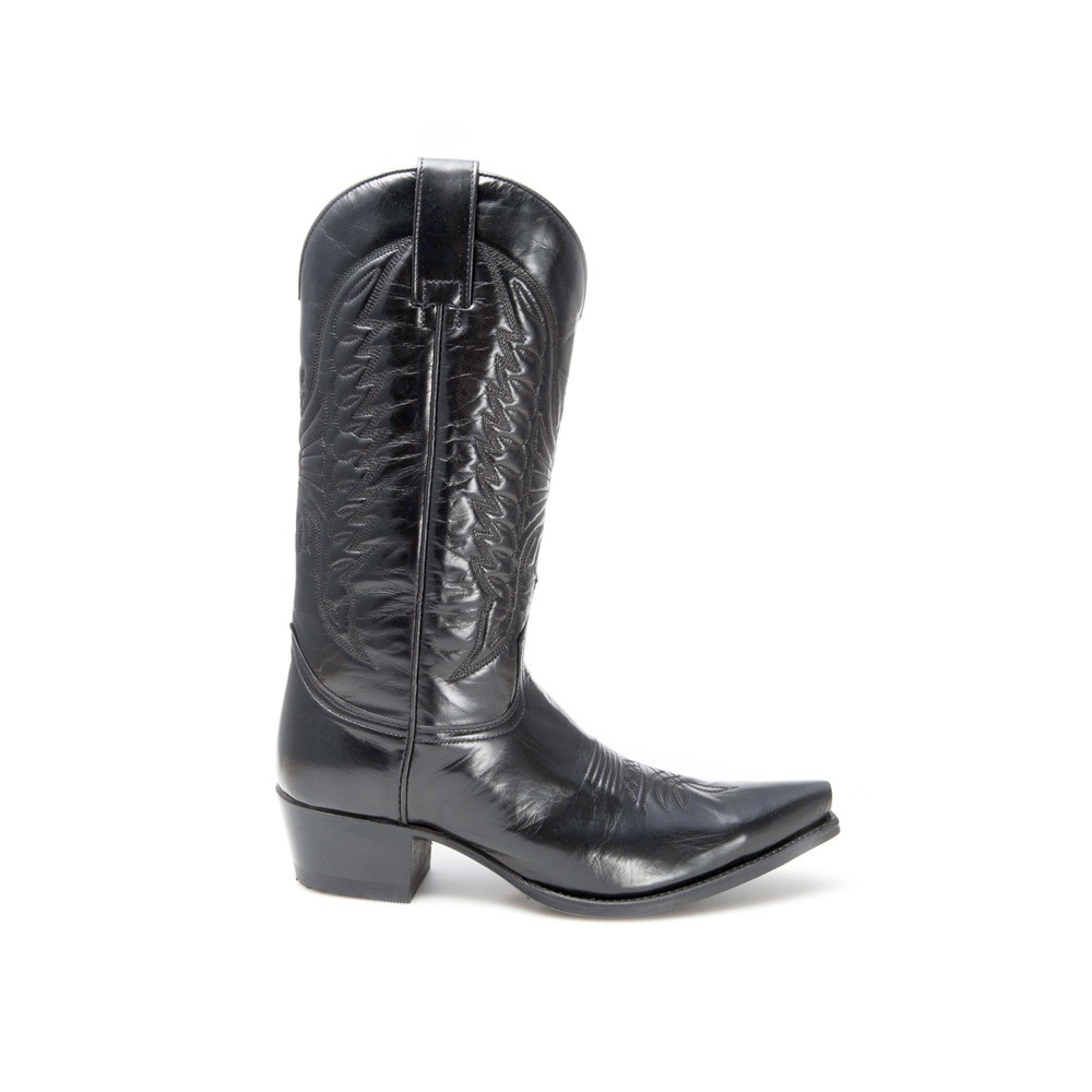 Hechas de piel de vacuno negro de gran calidad con pespuntes en pala y caña alta. Este modelo es un clásico de la colección Western de Sendra, y se diferencia del resto de botas de nuestra selección principalmente por tener un tacón recto.